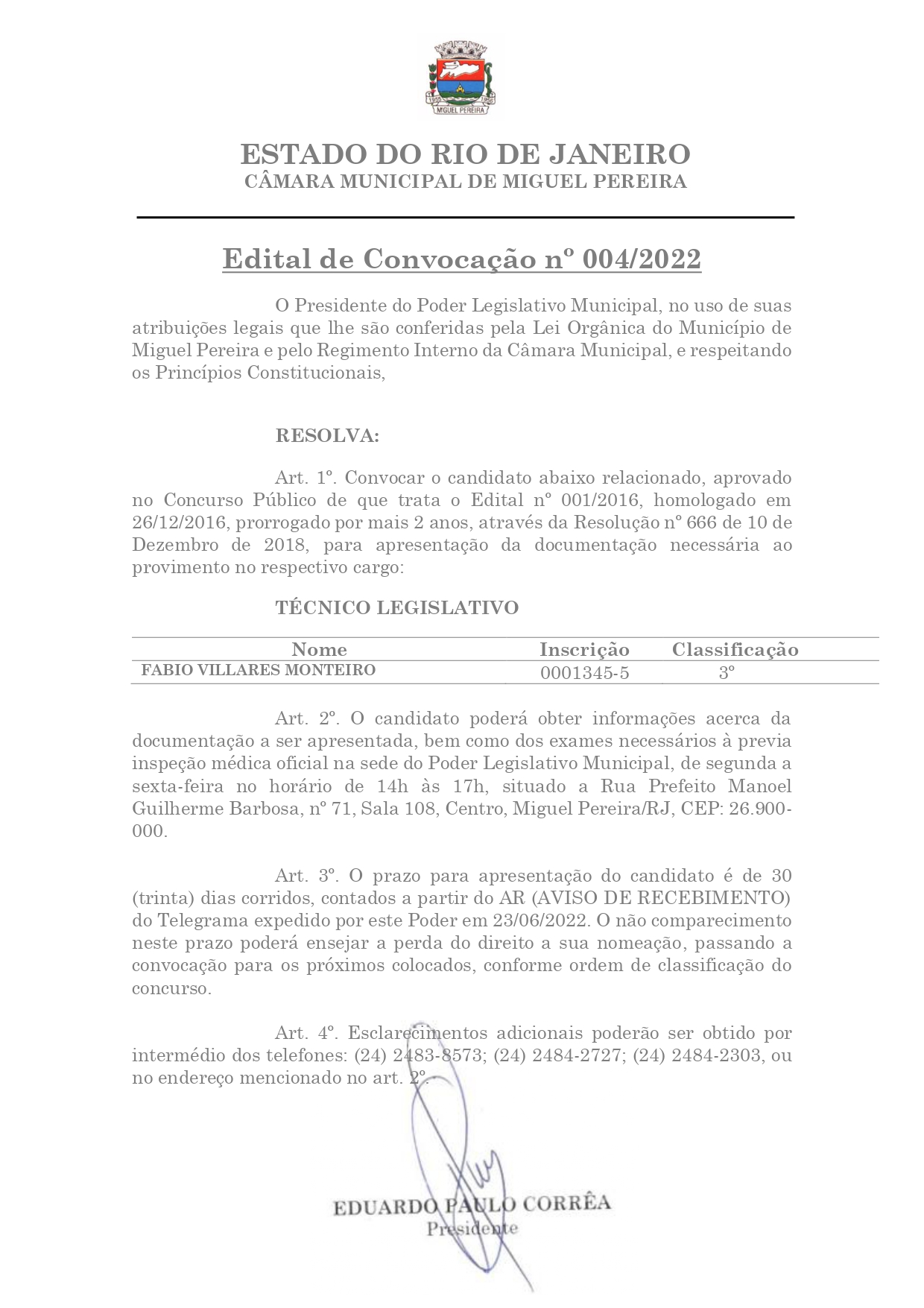 Edital de Convocação nº 004/2022 - Técnico Legislativo