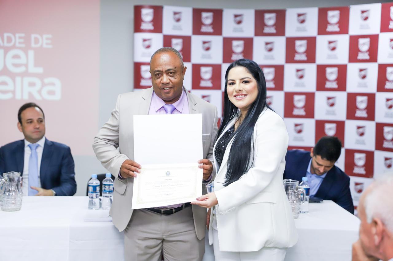 Vereador Evandro Taubinha recebendo o diploma das mãos da Exma. Juíza Dra. Amanda.
