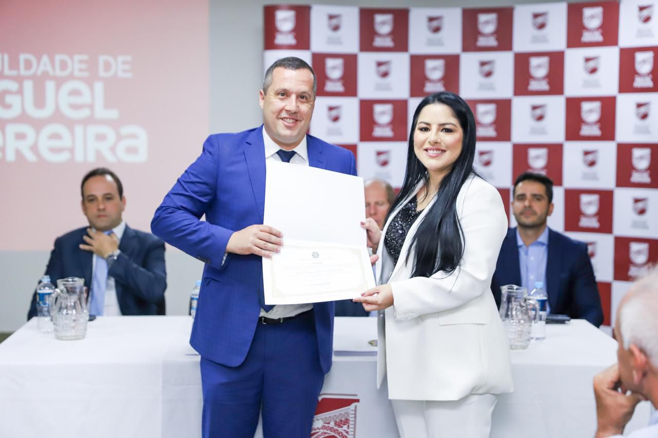 Vereador Vitor Ralha recebendo o diploma das mãos da Exma. Juíza Dra. Amanda.